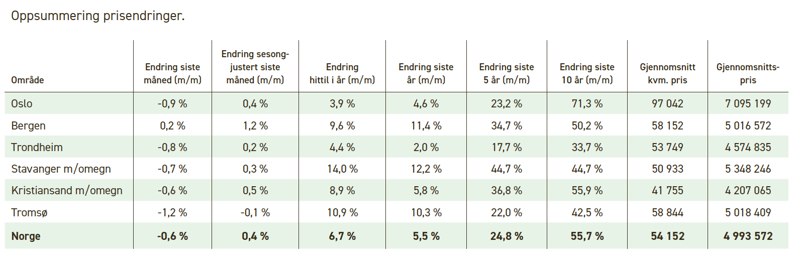 Gjennomsnittsprisen for en bolig i Norge var 4 993 572 kroner ved utgangen av september.