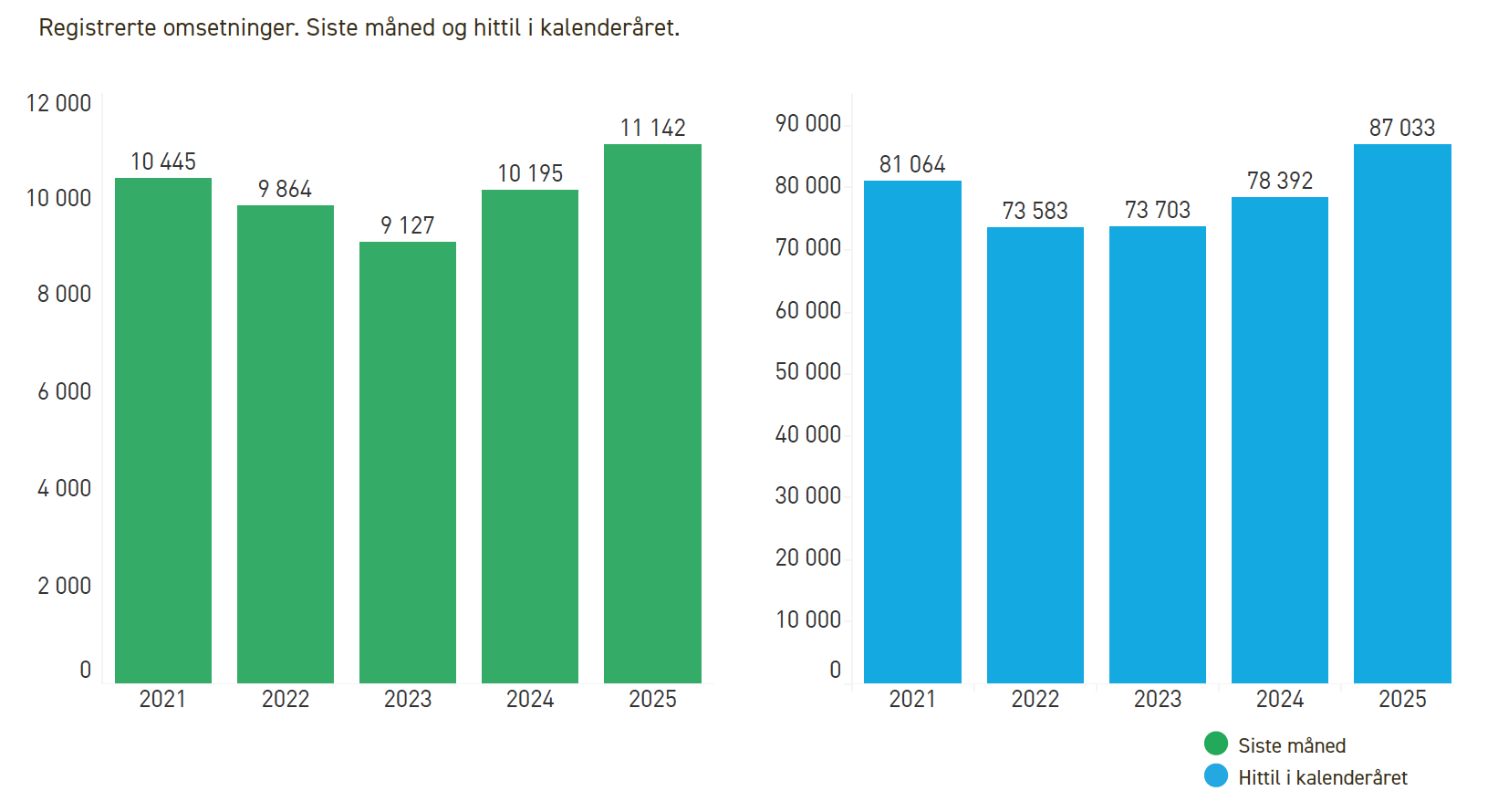 Så langt i år er det solgt 87.033 boliger i Norge, noe er 11 prosent flere enn i samme periode i fjor.